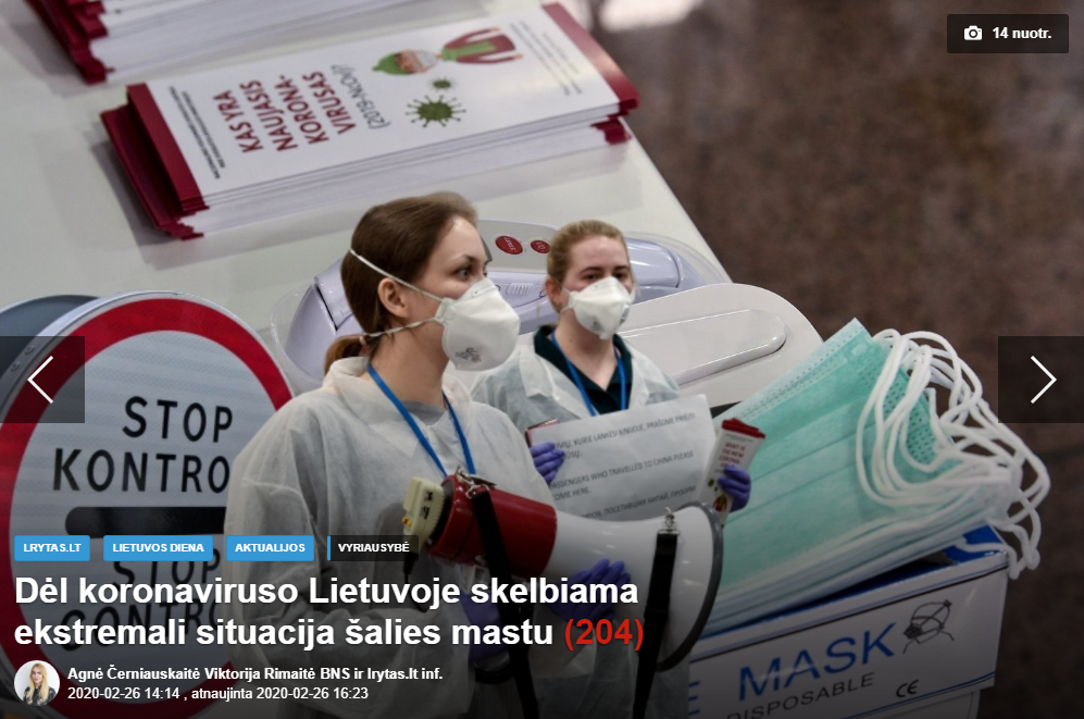 Vyriausybė trečiadienį vienbalsiai pritarė Sveikatos apsaugos ministerijos pateiktam projektui dėl koronaviruso grėsmės ir naujausių pranešimų apie viruso plitimą bei mirtis Šiaurės Italijoje skelbti valstybės lygio ekstremalią situaciją, ruošiantis galimam koronaviruso plitimui šalyje.